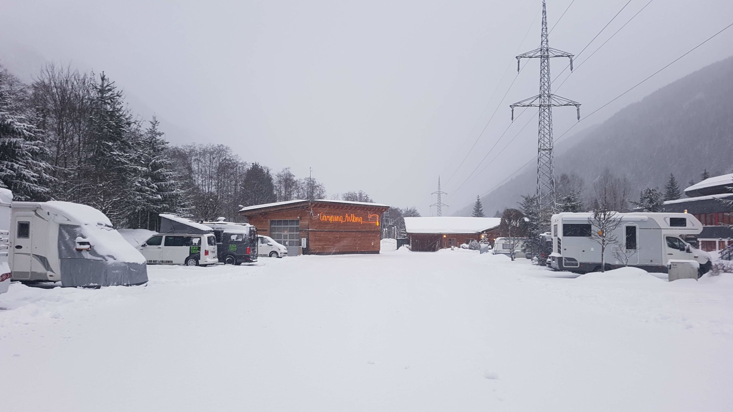 Heute ist noch kein Gipfelstürmen angesagt. Deslhalb fahren wir mit dem Schi-Bus (Schi = Ski auf österreichisch) nach Stänten oder auf gut deutsch St. Anton am Arlberg. Hier begüsst uns die Sonne für ein paar Minuten. Am Nachmittag gehts wieder zurück auf den CP. Ab morgen soll die Sonne permanent scheinen. So Gott will.
