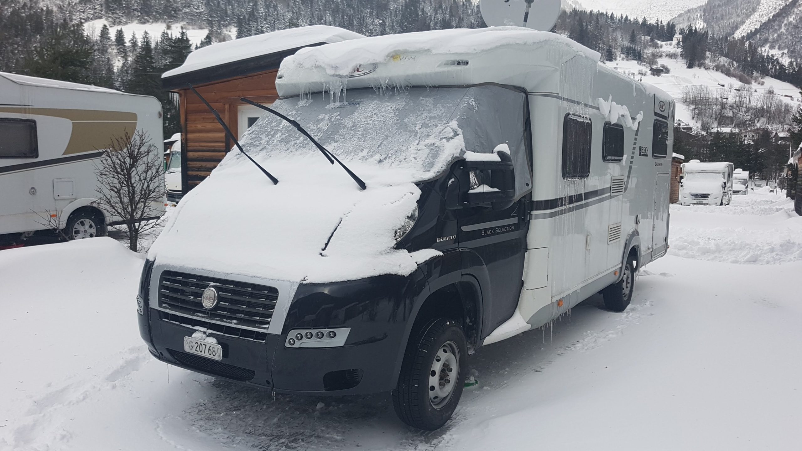 Übrigens, ich habe vorsorglich ein Duo-Contoll-Gasflaschen-Automat bei unserem Womi einbauen lassen. Das heisst es werden beide Gasflaschen ans Gas-System angeschlossen und die Automatik schaltet selbständig von der leeren Flasche zu Vollen um. - Eine Winterfrontscheiben-Abdeckung ist auf jeden Fall von Vorteil. Bei Schnee und Eis bleibt die Scheibe trocken und die Kälte einigermassen draussen.