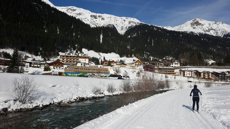 Samstag, heute wollen wir die Gegend auf Schuster’s Rappen erkunden. Wir fahren mit dem Bus nach St. Anton und suchen, eine ganze Weile, den in den Prospekten beschriebenen Winterwandeweg, der zurück nach Pettneu führt. Schliesslich haben wir ihn gefunden. Der Wanderweg führt weitgehend dem Bach Rosanna entlang. Nach knapp 7 km sind wir zurück auf unserem CP.