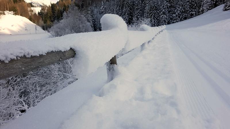 Ohne Stau’s und Grenzkontrolle haben wir Österreich erreicht. Kaum über der Grenze geht das Schneetreiben jedoch los. Erst noch schwach, aber je näher wir dem Arlbergtunnel kommen desto stärker wird es, die Sicht ist jetzt unter 50 m. Vor uns ein Tanklaster, der die verschneite Strasse schön vorspurt, überholen macht so keinen Sinn. Plötzlich, verringert er die Geschwindigkeit und stellt die Warnblinkanlage an. Unfall? Ist der erste Gedanke. – Nein, jetzt sehen wir es auch. Ein tschechischer Sattelschlepper (vermutlich mit Sommerreifen) steht fast still. Blinker raus und alle beide vorsichtig überholen. Zum Glück ist hier die Autostrasse zweispurig. Die Sicht wird nun besser und kurz darauf sind wir im Arlbergtunnel. Jetzt sind wir fast am Ziel. Pettneu am Arlberg ist am andern Ende des Tunnels.
