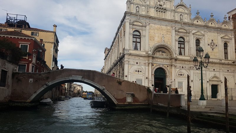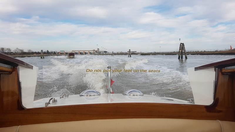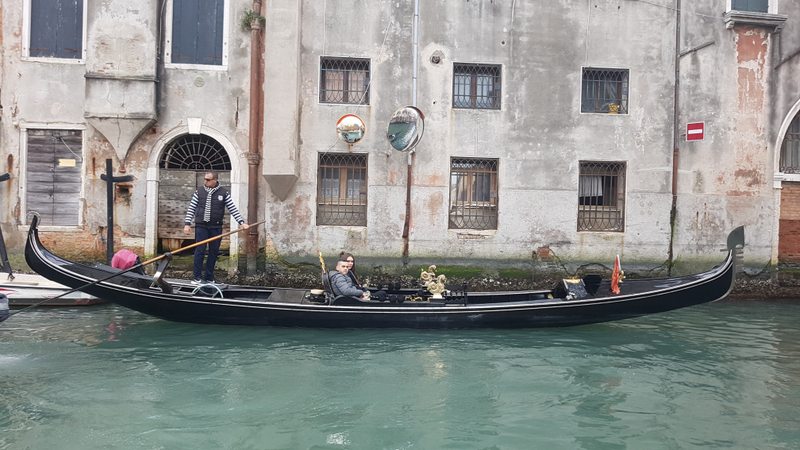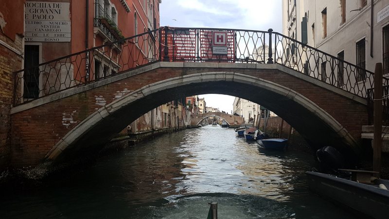 In Venedig angekommen, machen wir uns auf dem Weg zum Wassertaxi, vor ein paar Jahren musste man die „gefühlten“ 800m noch zu Fuss bis ans Meer die Koffer selber schleppen. Seit 4 Jahren wird die Strecke mit Laufbändern bewältigt. Supper!! Das gebuchte Wassertaxi brachte uns in gut einer halben Stunde in die Lagunenstadt. Bis zu unserem Hotel galt es aber noch diverse Kanäle und Engpässe zu bewältigen.