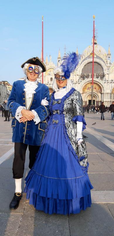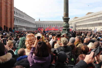 Zurück auf dem Markusplatz werden wir wie Filmstars empfangen. Hunderte von Touristen bewundern uns und wollen ein Foto von und mit uns machen. Es erfüllt uns schon mit Stolz, dass wir trotz der eher einfachen Kostümierung so bewundert werden.