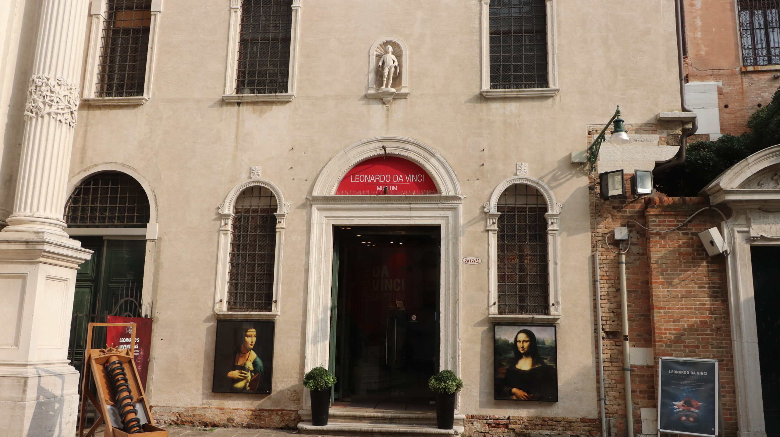 Dienstag, unser vorletzter Tag hier am Carnevale di Venezia. Wir machen uns auf dem Weg zum Leonardo da Vinci Museum. Wir studieren den Stadtplan und versuchen uns gewissen Gassen und Plätze einzuprägen. Geht ganz gut, aber für die letzten 100 m müssen wir doch Google-Maps fragen. Google weiss (fast) alles. Das Museum liegtrichtig versteckt und Wegweiser dahin gibt es auch keine. Aber wir haben es gefunden.