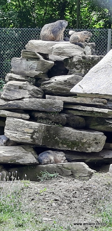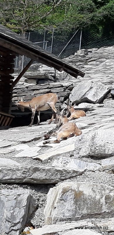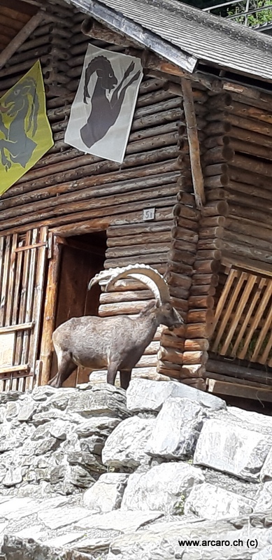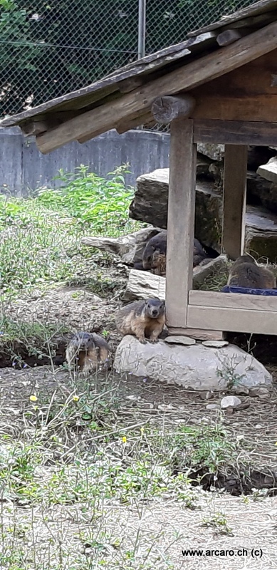 Nach einem Stadtbummel besuchen wir den Alpenwildpark in Interlaken. Er ist etwas versteckt bei der Talstation der Harder-Kulm-Bahn. Einfach die Ausgangstreppe der Harder-Bahn hinaufsteigen und beim Ausgang weiter den kleinen Waldweg benutzen. Nach 5 Minuten erreicht man den kleinen Alpenwildpark mit Murmeltieren und Steinböcken.