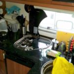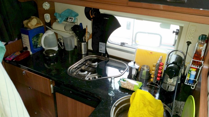 Ein weiteres highlight vom neuen Womi war die grosse Küchenzeile, man hatte genügend Abstellfäche zur Verfügung. Wir hatten mittlerweilen schon tausende Wohnmobile besichtigt und mussten feststellen, dass die meisten neben den 3-Flammigen Herd und dem Waschbecken keinen Platz mehr für die kleinste Kaffeemaschine hatten.