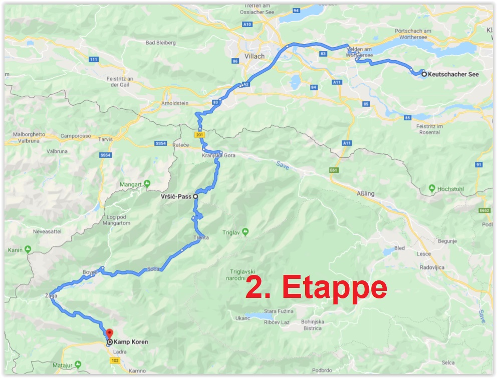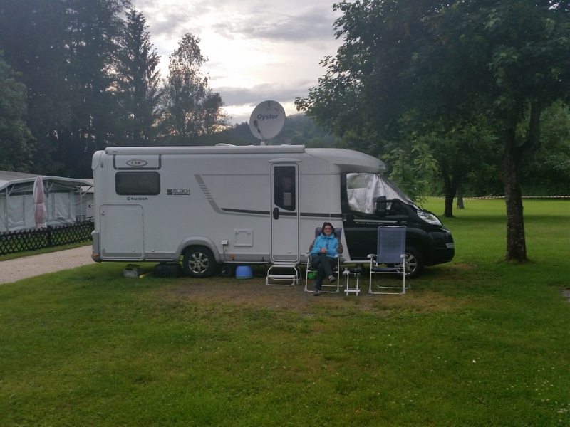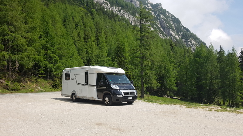 Tag 3 unserer Reise. Die Sonne schien wieder und nach dem Frühstück machten wir uns startklar. Das heisst, vom Strom abkoppeln, Utensilien und Kleider in die Schränke verstauen, Stützen und Satelitenschüssel einfahren und die Campinggebühren bezahlen. Nun gings Richtung Südwesten zum Karawanken-Pass, resp. dem 7864 m langen Tunnel. Wieder ans Tageslicht angekommen waren wir in Slowenien. Zum Glück hatten wir die slowenische Autobahn-Vignette bereits beim letzten Tankstopp in Österreich gekauft. 30 €uro für einen Monat autobahnfahren.