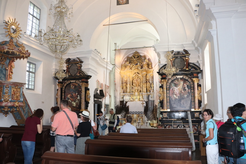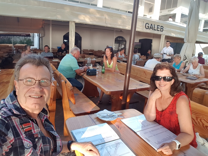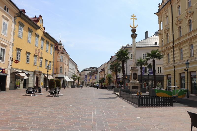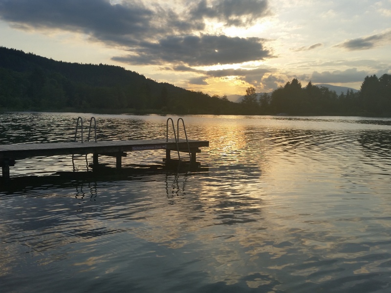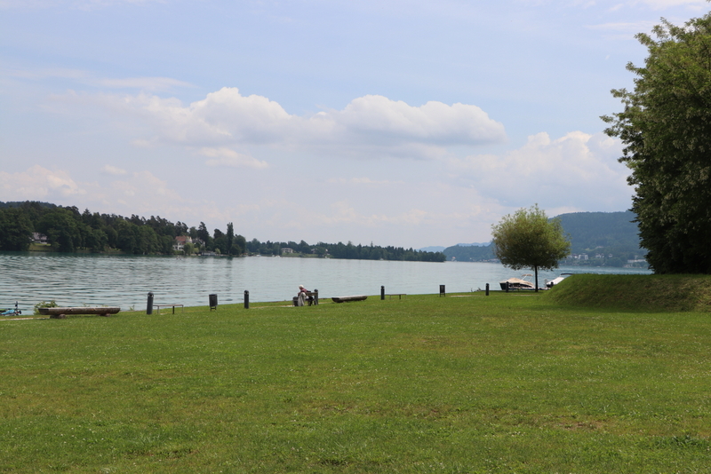 Auf diesem Platz blieben wir im Ganzen zwei Tage (Nächte). Den folgenden Tag benutzten wir für einen Ausflug nach Klagenfurt. Wir holten unseren Roller aus der Wohnmobilgarage und fuhren los. Die Altstadt war klein aber durchaus Sehenswert. Es war Sonntag und sie wirkte wie ausgestorben. Die meisten Restaurants und Kaffees waren geschlossen. Man erwartete scheinbar nicht viele Touristen. Auf dem Rückweg besuchten wir noch das kleine Dörfchen Maria Wörth am Wörthersee. Zurück auf dem Campingplatz genossen wir bei sommerlichen Temperaturen ein Bad im Keutschachersee. Alles schien perfekt. Am späten Nachmittag verdunkelte sich plötzlich der Himmel und ein Gewitter zog auf. Nach ca. 2 Stunden war alles vorbei und wir konnen ohne aufgespannten Regenschirm zum Restaurant gehen.