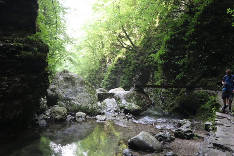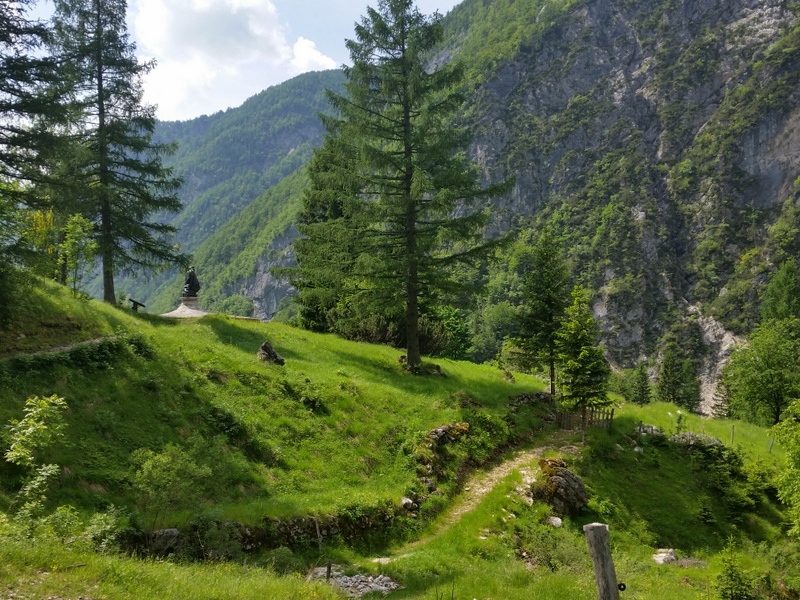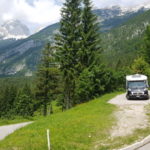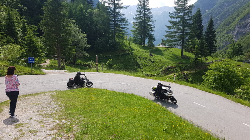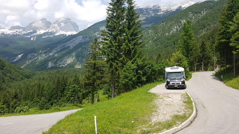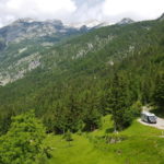 Die Gegend war wunderschön und erinnerte und ganz an die schweizer Voralpen. Die normale Route führte weiter über den Vrsic-Pass. Glücklicherweise hatten diese Idee nicht viele andere Autofahrer. Über 50 Harnadelkurven, meissten zu eng zum Kreuzen (unser Wohnmobil hat eine breite von 2,50m inkl. Aussenspiegel).