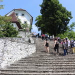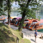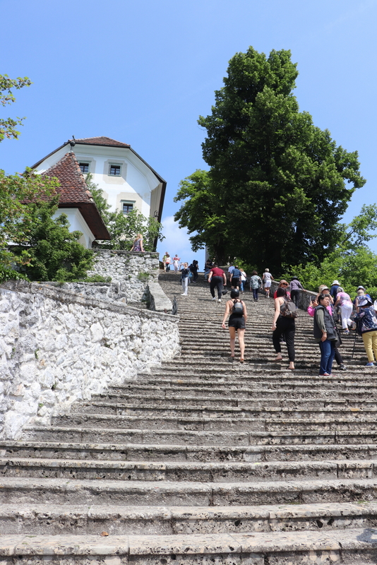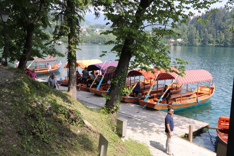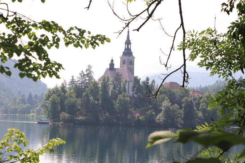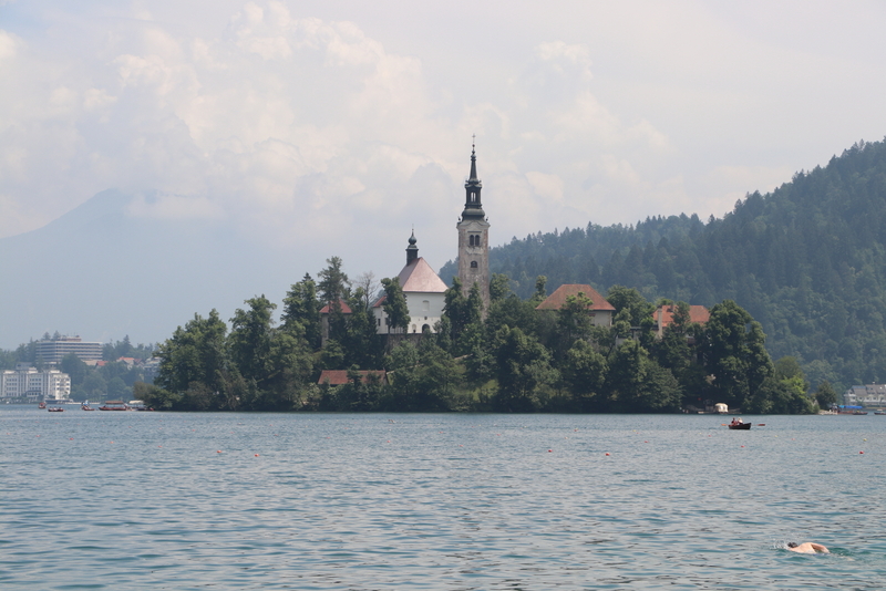 Am nächsten Tag (Mittwoch) hiess es weiterfahren nach Bled. Das kleine Städtchen Bled liegt auf der anderen Seite des Nationalparks Triglav an einem idyllischen kleinen See. Inmitten des Sees liegt eine kleine Insel mit einer Kapelle. Jeder der eine Eintritskarte von € 6.00 bezahlt, darf die Glocke mit einem Seil läuten lassen und sich dabei etwas Wünschen. Im Grunde viel zu teuer, aber was macht man nicht alles wenn Wünsche in Erfüllung gehen sollten. Auf die Insel kommt man auf verschiedene Arten. Entweder man mietet sich ein Ruderboot und rudert hinüber oder man steigt in ein Sammelboot ein und lässt sich rüberrudern. Wir entschlossen uns ein Elekto-Sammelboot zu benutzen. Erstens war es günstiger mit € 11.00 und es dauerte nur ca. 15 Minuten. Aud dem See sind nur Muskel- oder Eletromotoren erlaubt. Rund um den See gab es einen gut augebauten Wander- und Radweg. Das nächtliche Gewitter mit Regen liess auch hier nicht auf dich warten.