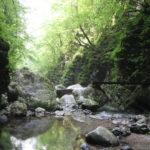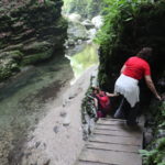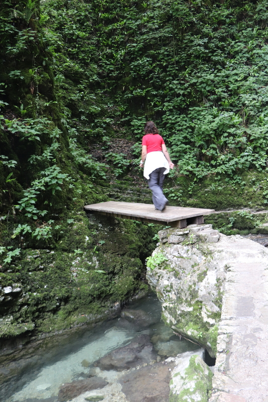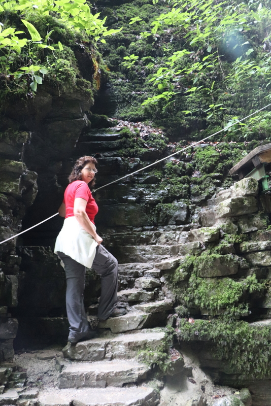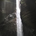 Bei der Anmeldung hatte uns das nette Fräulein (auf deutsch) einen Besuch des nahegelegenen Wasserfall empfohlen. Diesen wollten wir uns auf keinen Fall entgehen lassen. Nach dem Frühstück wanderten wir los und folgten der ausgezeichneten Beschilderung. Nach ca. 45 Minuten erreichten wir über gut ausgebaute Wander- und schmale Wurzelwege den Anfang des Bachlaufes. Eine spekakuläre Plattform bot uns einen tollen Blick zum ca. 20 m hohen Wasserfall.