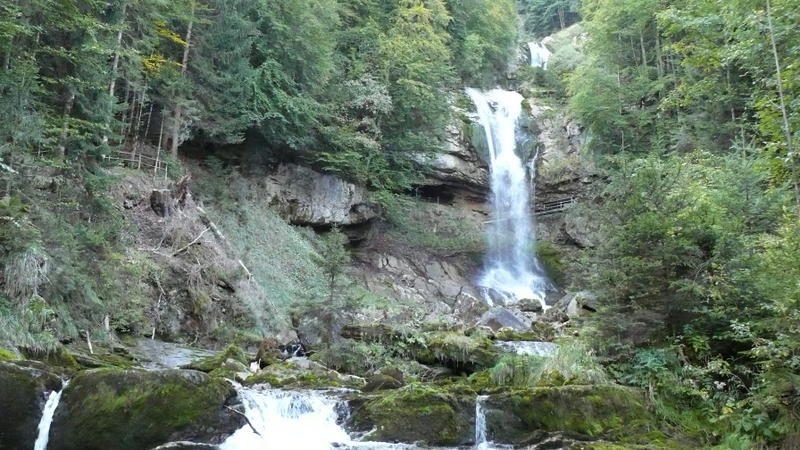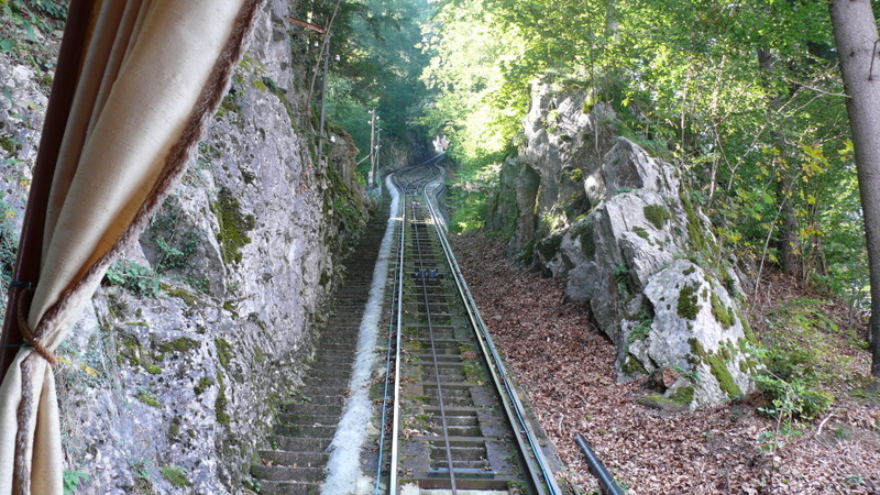 Auf dem Weg zum Campingplatz machen wir einen kleinen Abstecher zu den berühmten Giessbach-Wasserfällen. Hier soll der berühmte Dedektiv Sherlock Holmes umgekommen sein. Er logierte damals im Grand Hotel Giessbach.