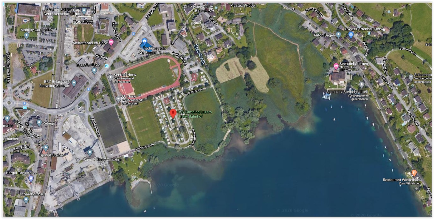 Wir fahren nun mit dem Womi nach Horw zum TCS-Campingplatz direkt am See.
