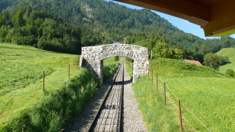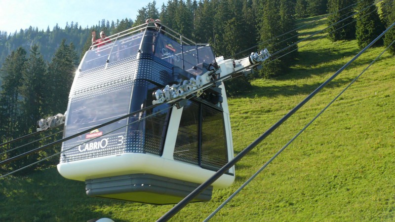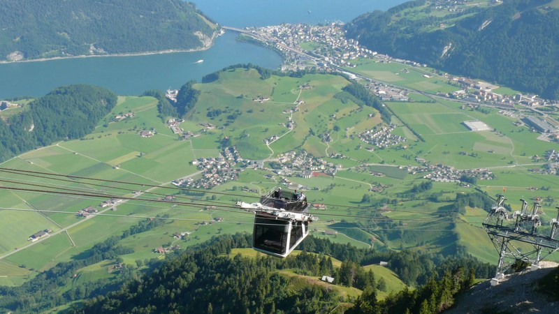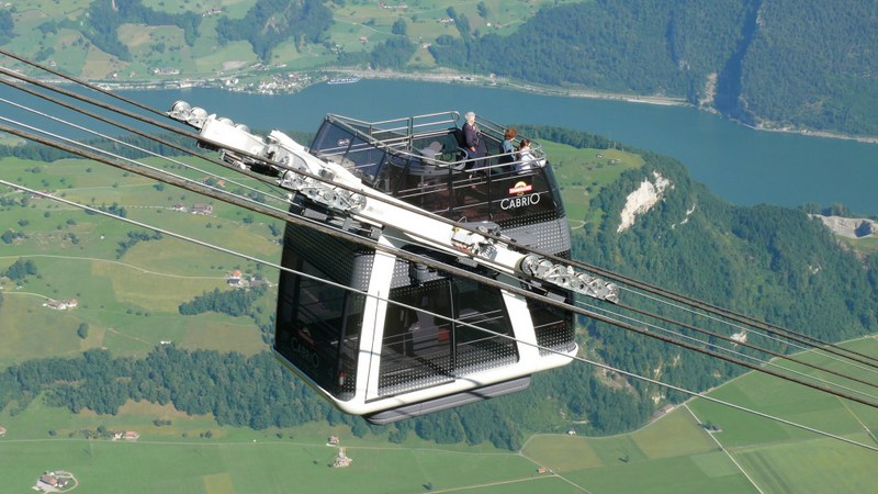 Von Stans aus fährt die Standseilbahn bis zur Zwischenstation Alp Blumatt. Dort steigt man um in die „CabriO-Luftseilbahn“ bis zum Gipfel des Stanserhorns.