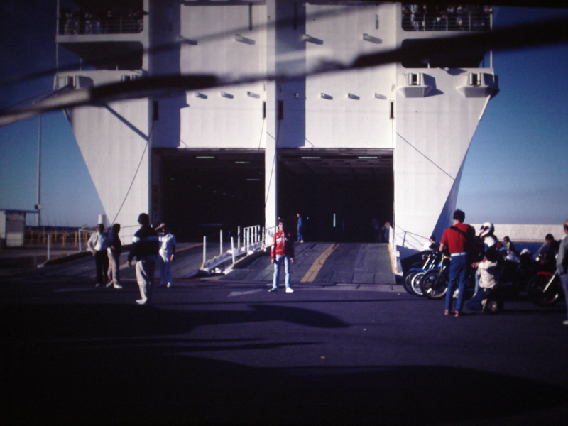 Ca. eine Woche vor der Abfahrt war alles bereit. Zelt, Luftmatratzen, Kocher, Geschirr, Badesachen, Strassenkarte, etc.. Eines liess mir aber keine Ruhe. Die Fähre. Braucht man wirklich keine Reservation, hat es wirklich genügend Platz? Ich machte mich auf ins nächste Reisebüro und wollte mich schlau machen. Die nette Dame war sehr hilfsbereit. Als erstes Frage sie mich wann wir reisen wollten. Als ich ihr sagte in einer Woche, verzog sie ihr Gesicht und schaute mich mitleidig an, mit dem dem Hinweis, dass es jetzt Ferienzeit sei und die Fähren meist voll seinen. Ich fragte, ob es noch möglich wäre einen Platz zu reservieren. Sie sagte, sie könnte schon versuchen Plätze zu buchen, aber ob die Antwort noch rechteitig vor der Abfahrt da wäre, sei fraglich. Mormalerweise dauerte es ca. 8 – 10 Tage. Das Internet war damals noch nicht erfunden. Frustriert verliess ich das Reisebüro. Am Abend beschprach ich mich mit Brigitte, wie weiter? Wir entschlossen uns planmässig zu starten. Wir konnten unsere Ferien so kurzfristig nicht verschieben.